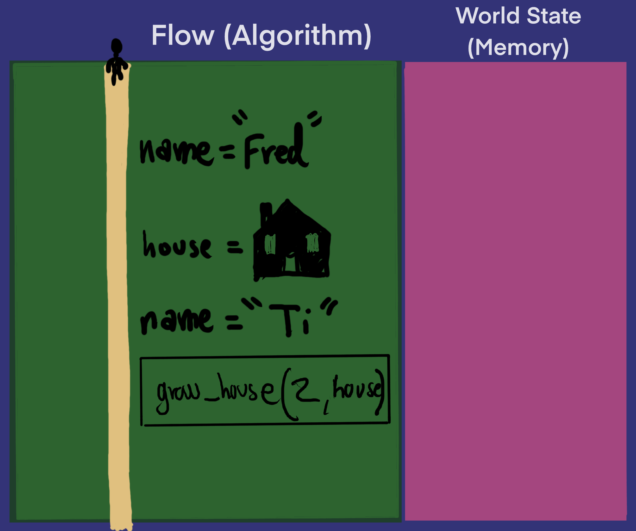 I try to motivate concepts by building interactive, playable visual artifacts. This is a flood-fill algorithm visualization that works with an actual animation system that can be paused, fast-forwarded, and reset by live-coding as the program is running. In this case, I can change the starting position of the grid.