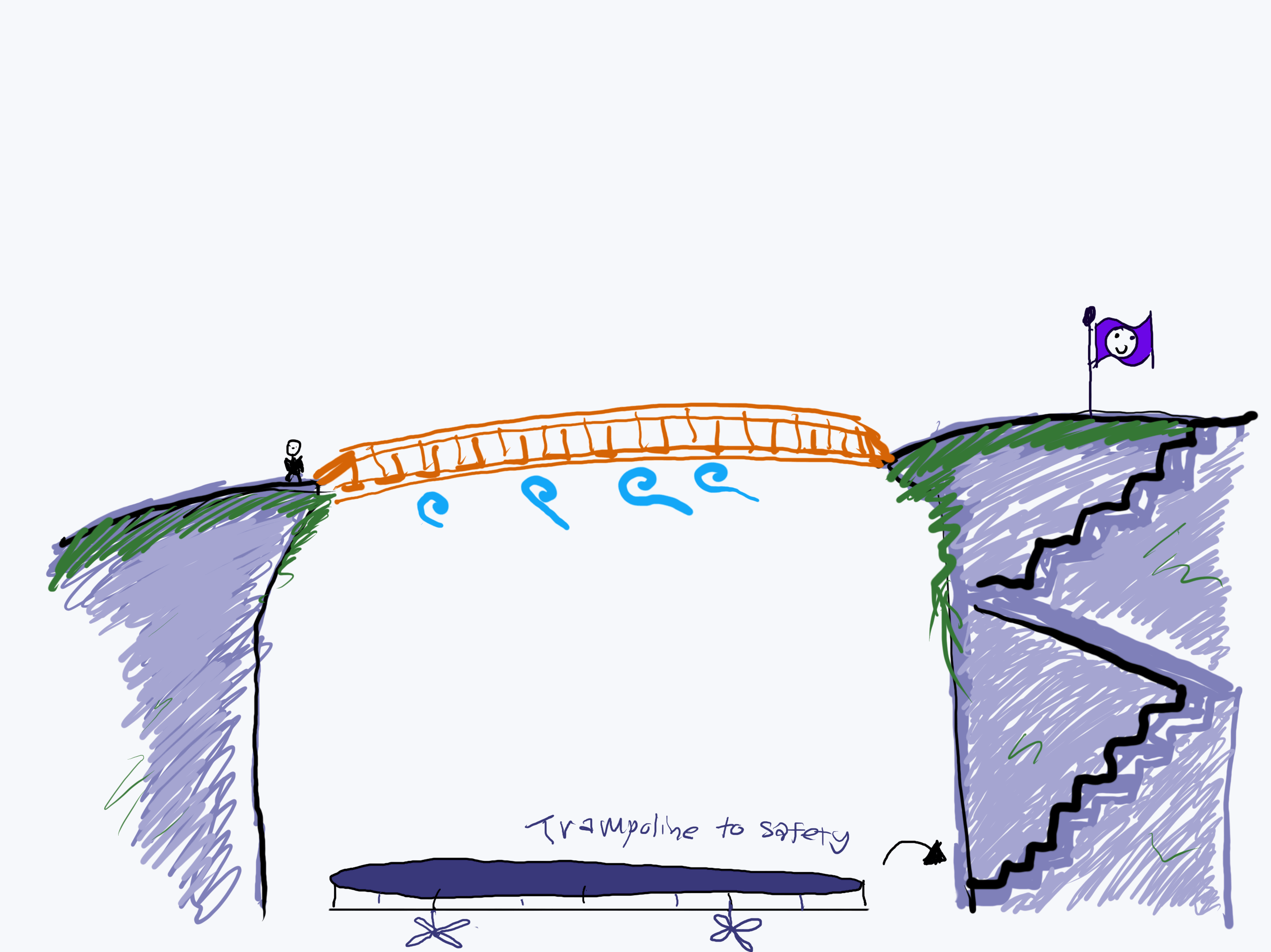 We can think of error-handling as creating a trampoline beneath a perilous code path, to give the program flow towards a safe way out